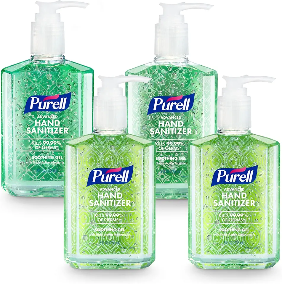 PURELL Soothing Gel (4 x 8 fl oz pumps, 2.5 lbs total). Fresh scent, moisturizing, kills germs fast. 1-year warranty.